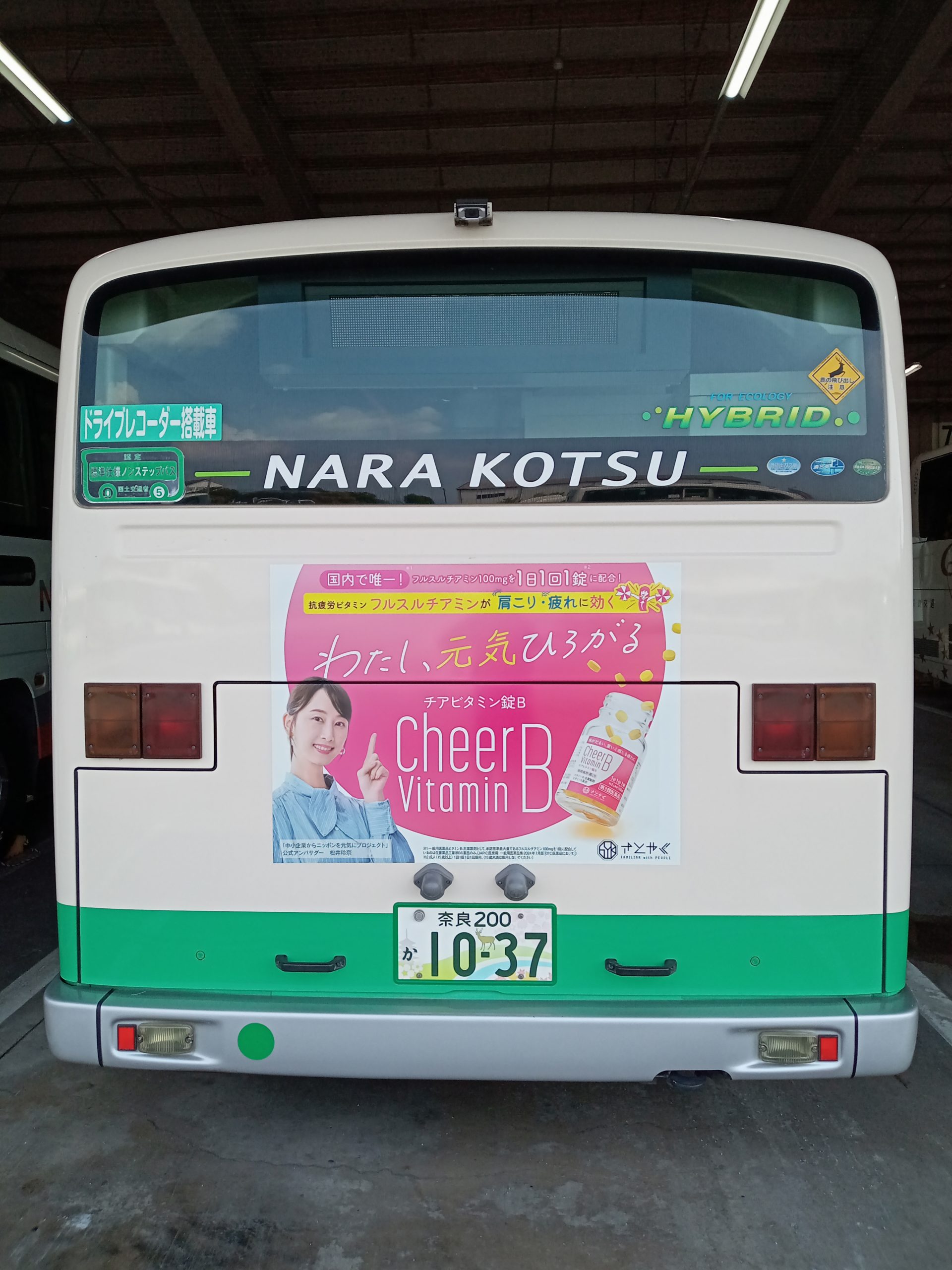 2025.10.17 チアビタミン錠Bのキービジュアルを掲載したバスが奈良市内で運行中! 2025年9月1日より、ビタミンB1主薬製剤「チアビタミン錠B」のキービジュアルを掲載したバスが、奈良市内にて運行を開始しました。 「中小企業からニッポンを元気にプロジェクト」公式アンバサダーである元SKE48の松井玲奈さんを起用した、日々頑張る皆さまを応援する明るく元気なビジュアルが掲載されています。 奈良市内を走るバスの後ろ姿にぜひご注目ください! «一覧