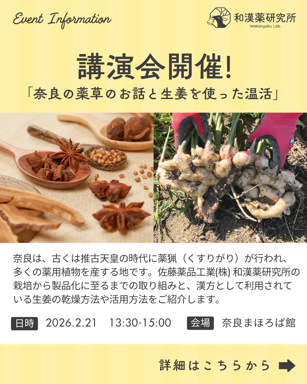 講演会開催のお知らせ~奈良の薬草のお話と生姜を使った温活~