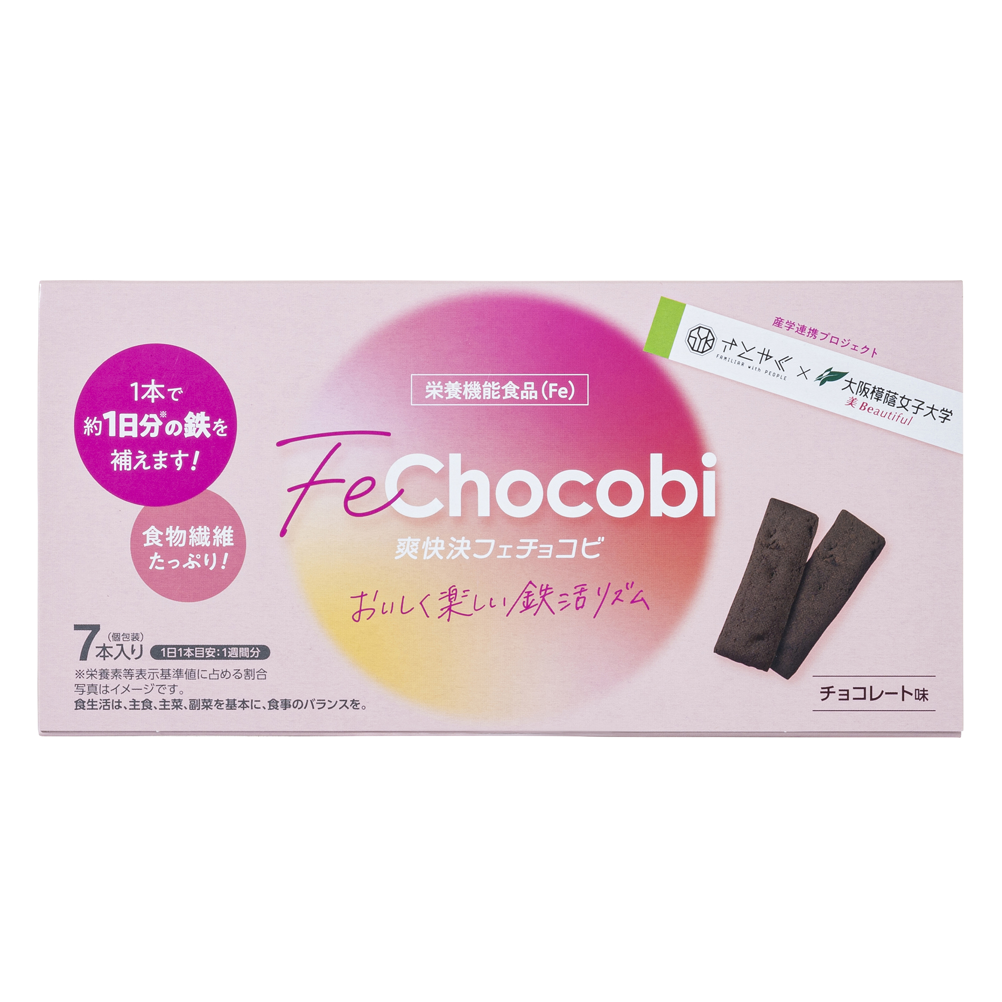 本製品は鉄分補給を目的としたお菓子感覚の栄養機能食品(Fe)で、1本に鉄8mgを配合し、女性の鉄不足対策や健康維持をサポートします。大阪樟蔭女子大学との共同プロジェクトとして、SNS施策や「鉄活リズム®」という新習慣提案も進めており鉄分摂取啓発による健康意識向上と献血協力促進を目指しています。